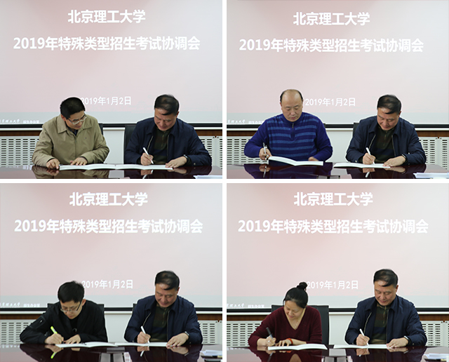 会上,王晓锋代表学校分别与外国语学院、体育部、校团委、人文与社会科学学院负责人签订了《BB贝博艾弗森官方网站2019年特殊类型招生考试工作责任书》。