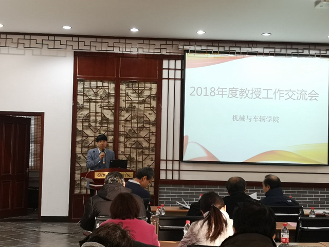 2019年1月16日,机械与车辆学院2018年度教授工作交流会在车辆重点实验楼报告厅召开。院长姜澜、党委书记左正兴等学院领导班子成员、学科及专业责任教授、各系部中心主任及党总支书记、所长、学院全体教授等参加了会议。会议由副院长席军强主持。