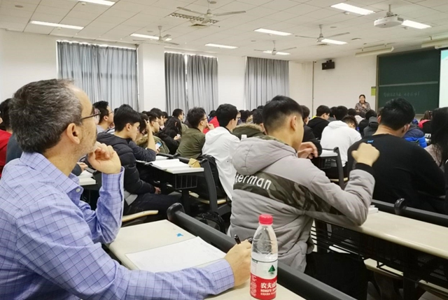 Guillermo Goldsztein教授为数学学院相关任课教师及学生作了 “Mathematics at Georgia Tech”主题报告,在报告中,他介绍了佐治亚理工学院的相关课程设置及教学做法,大家就数学基础课程相关具体细节设计进行了深入的交流和探讨,老师们纷纷表示受益匪浅。期间,Guillermo Goldsztein教授也谈了自己对北理工数学课程的体会并对北理工数学公共课给出了高度赞誉,认为北理工数学课程老师不但对课堂的设计合理,而且对课堂的把控游刃有余,和学生们的互动轻松愉快,更感慨学生虽多却能井然有序的课堂氛围。