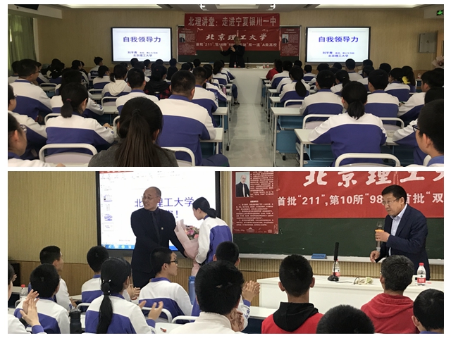 5月13日至17日,宁夏银川一中邀请全国十所一流大学专家教授走进中学,开展第八届文化艺术节系列讲座。14日下午,刘平青教授走进银川一中开展“北理讲堂”。当天同时开讲的还有清华大学、南开大学、中国人民大学和同济大学,刘平青教授以《自我领导力》为题的讲座异常精彩,紧密结合高中学生成长发展实际,激情讲述北理工真实案例,得到了银川一中师生的高度赞誉,扩大了BB贝博的知名度与影响力!讲座由银川一中副校长柯良才主持,之前循环播放了学校宣传片,领航人丁亚平老师对学校情况和宁夏区招生政策进行了宣讲。