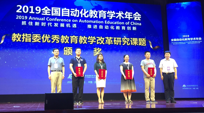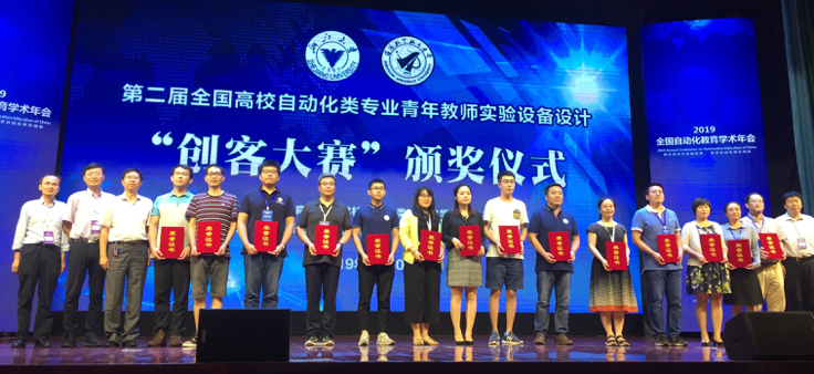 在闭幕式上,举行了自动化类专业教学指导委员会优秀教育教学改革研究课题和第二届全国高校自动化类专业青年教师实验设备设计“创客大赛”颁奖仪式,自动化学院高琪“通过教与学学术(SoTL)研究开拓自动化类专业青年教师教学发展的有效途径”教改课题获得优秀教育教学改革研究课题,赵江波自制实验教学设备“电机伺服系统控制与性能测试实验台”获“创客大赛”银奖。