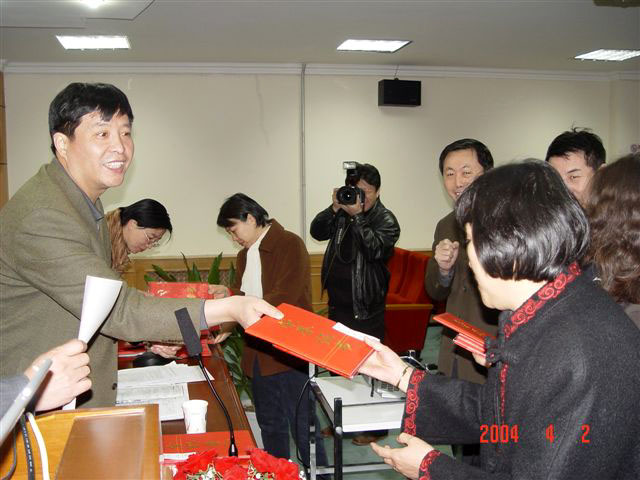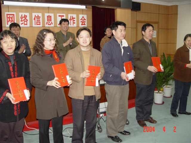 侯校长在为学校2003年度网络信息工作先进单位和先进个人进行发奖