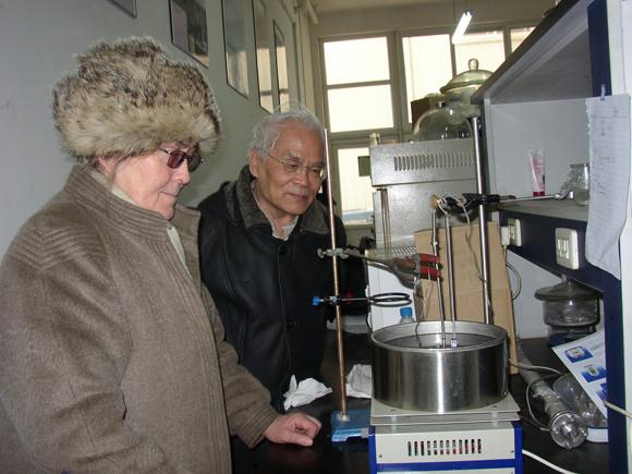 2007年12月中旬,莫斯科化学物理研究所奥伏其尼科娃教授应邀来BB贝博艾弗森官方网站材料科学与工程学院,在高分子聚合物动力学,单体组分比对共聚物嵌段结构的影响方面,与该学院的老师和学生进行了为期一个月的科研学术交流。图为伏其尼科娃教授正在和该学院教授讨论共聚物结构对于聚合物性质的影响。(刘艳 摄)