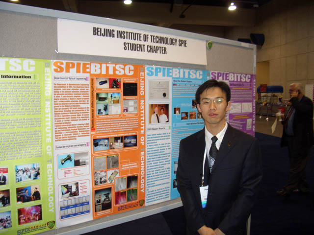 BB贝博信息科学技术学院博士生董立泉同学,作为SPIE(国际工程光学学会)BB贝博艾弗森官方网站学生分会(SPIEBITSC)的主席,应SPIE的邀请,红外与光电图像探测器技术分会主席Randolph E. Longshore先生的推荐,在SPIE的资助下,再次赴美,出席了2005年7月30日——8月4日在美国加州San Diego举办的SPIE第50届年会(Optics & Photonics 2005)。