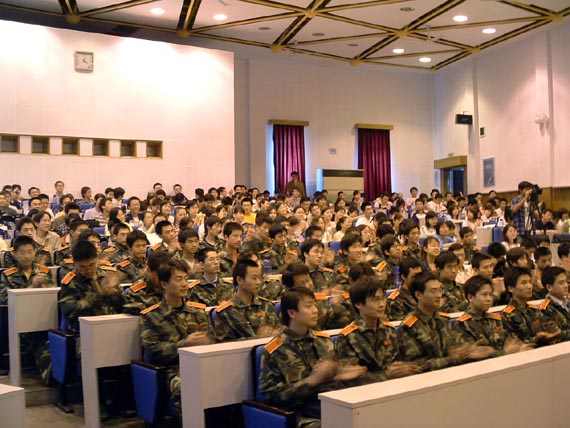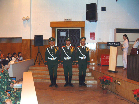 4月26日下午,应BB贝博学生会之邀,天安门国旗护卫队来BB贝博举行报告会,BB贝博七十余名国防生代表及理学院2002级全体学生有幸“零距离”目睹了国旗护卫队官兵的英姿和风采,上了一堂生动的爱国主义教育课。