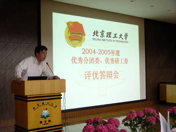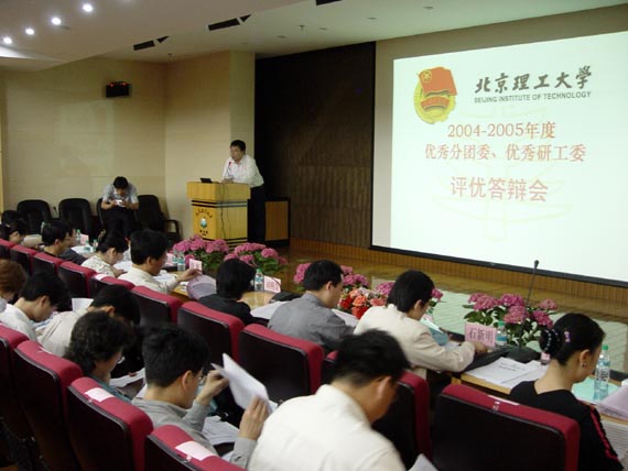今年的评优工作在往年的基础上又增加了“团员之星”、“五四科技奉献奖”两个项目的评选。4月13日与4月20日分别是“十佳团员”、“十佳团支部”的风采展示与现场答辩,最精彩的是4月28日下午2:00在BB贝博新团书馆报告厅举行的“2004—2005年度优秀分团委与优秀研工委的答辩”。