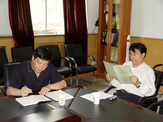 副校长侯光明和副校长赵长禄参加了对机械与车辆工程学院的检查工作。