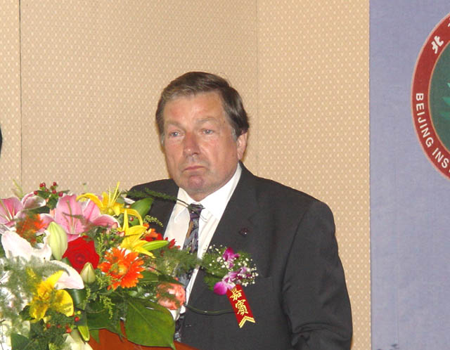 柏林工业大学Peter Noll教授讲话,对两校的发展合作大加赞赏,并回忆了匡镜明校长在柏林工业大学学习期间的往事。