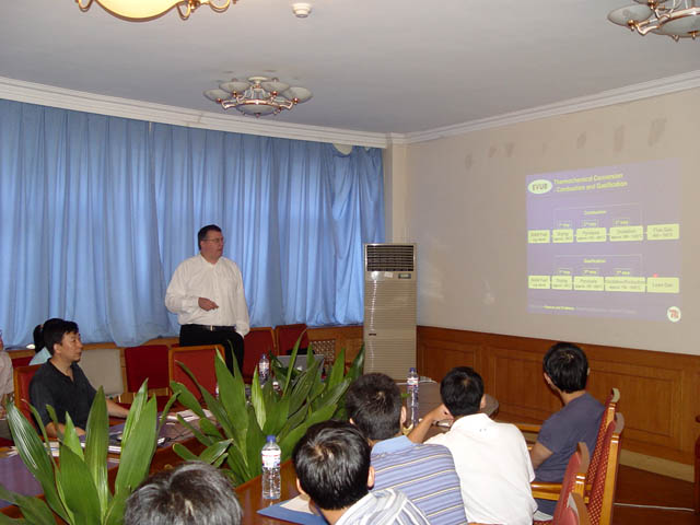 TUB代表团成员在进行能源主题的学术报告会,化工与环境学院的师生参加了报告会。
