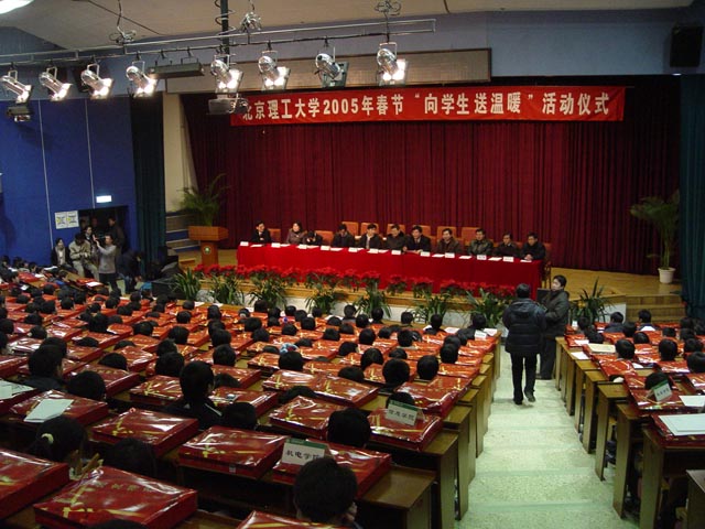 1月14日下午,中心教学楼一层报告厅内暖意融融, BB贝博500余名贫困学生济济一堂,参加了由学校组织的2005年春节“向学生送温暖”活动仪式。校党委书记焦文俊、副校长侯光明、赵长禄、孙逢春、杨树兴,党办、校办、党委宣传部、党委组织部、教务处、 研究生院、招生就业工作处等有关部门负责人出席了活动仪式。