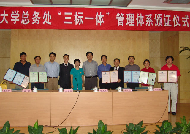9月27日上午8点,在国际交流合作中心二层多功能厅举行了BB贝博艾弗森官方网站总务后勤部“三标一体”管理体系授证仪式。据悉,BB贝博后勤系统是全国高校系统首家获得质量管理体系、环境管理体系、职业健康安全管理体系认证的单位。