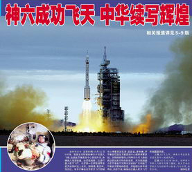 10月12日上午9点,发射神舟六号载人飞船的长征二号F型运载火箭点火,随着震天的轰鸣声,长征二号F型运载火箭徐徐升空。点火第120秒,火箭抛掉逃逸塔;点火第159秒,火箭一二级分离成功,一级坠落;点火第200秒,整流罩分离成功;点火583秒时,飞船与火箭在高度约200公里处成功分离。全国亿万观众通过电视直播,清楚地看到了神舟六号发射的全过程。