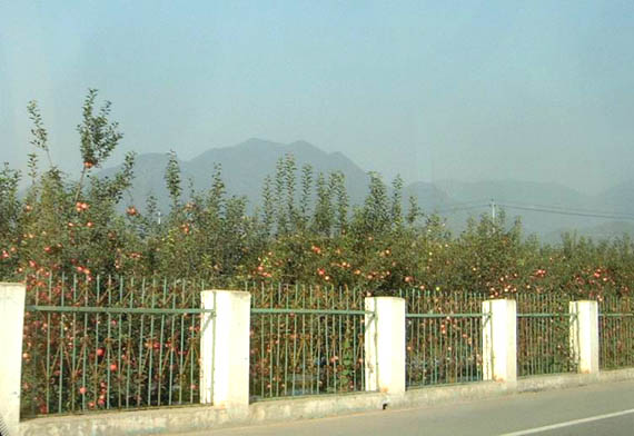 一路上公路两边供逰人采摘的果园里,红艳艳的苹果压得树枝弯下了腰,令人赏心悦目又垂涎欲滴;可直接饮用的地下水清澈碧绿;