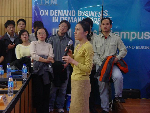 接下来,IBM资深经理杨英玲女士,项目经理李洁女士,及校友王俊从不同角度畅谈了IBM企业文化,技术人员职业发展道路,管理体制等,以更具体,生动地形式向与会同学介绍了IBM。