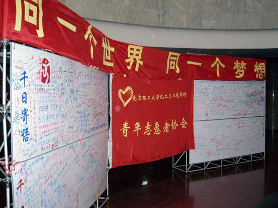 2005年11月12日是北京2008年奥运会倒计时整整1000天的日子,也是大家翘首以盼的一天。2008年8月8日,这个北京奥运会开幕的日子已经不远,化工与环境学院青年志愿者协会结合BB贝博实际情况,于11月11日和12日两天在中心教学楼一层大厅举办“迎奥运千日寄语”大型留言活动,希望同学们在这特殊的日子里为我们的奥运会诚挚的祝福,支持北京举办举办奥运会,并通过本次活动呼吁同学们奉献自己的美好青春,施展大学生的聪明才智支持奥运、服务奥运。