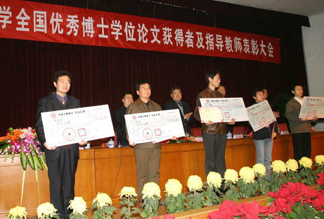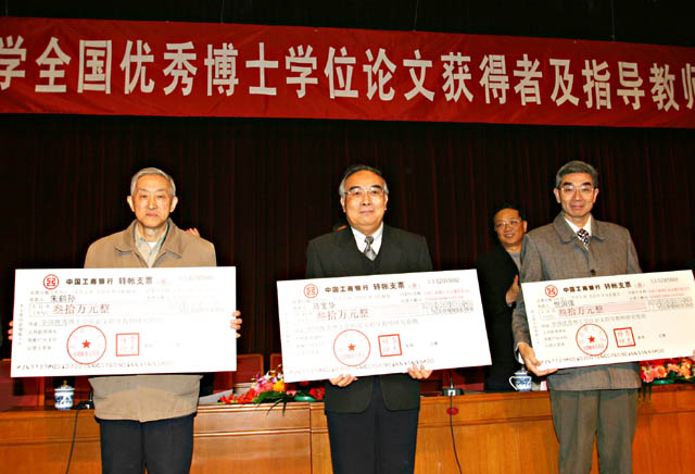 全国优秀博士学位论文获得者指导教师朱鹤孙和邢修三、马宝华、倪国强各获得10万元奖励及30万元研究资助,提名论文获得者指导教师梅凤翔、朱鹤孙、葛渭高、李前树各获得1万元奖励及20万元研究资助。