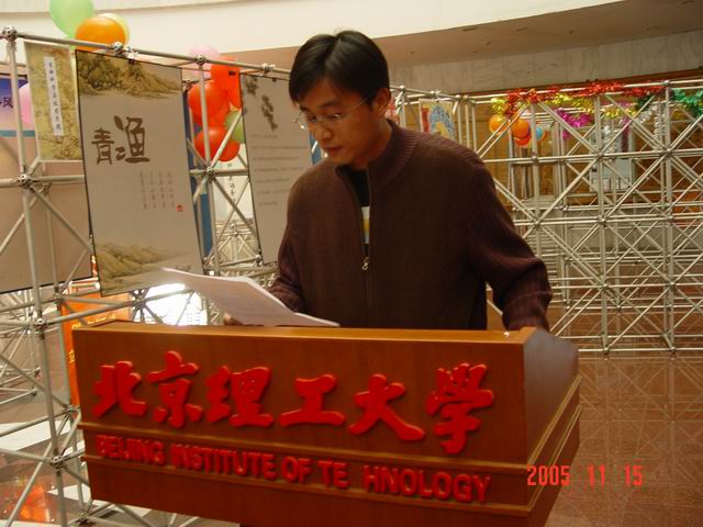 在开幕式中,董兆波老师为风采展致开幕词,希望此次活动能圆满成功,祝愿各个文学社团越办越好,共同为繁荣北理文化作出贡献。之后由主办方机电工程学院宇思文学社代表做了对本次活动概况的介绍。这里有宇思十年的成长历程,有宇思十年的积淀,还有全校其他文学社团的精华展示。这些共同构成了北理今秋一道靓丽的风景线。