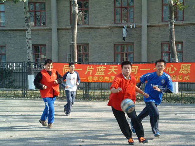11月23日,我们邀请了利智中心的师生代表来BB贝博参观、联谊。上午9:30,中心的两名老师和九名学员来到了学校东门,在我们志愿者的陪同下参观了校园。接着,便开始了活动的核心部分--小型足球赛。我们会员和中心学员混编为两队进行比赛。智力的缺陷并未使学员们失去信心和斗志,他们在球场上表现得十分顽强,比赛进行得很顺利。赛后,我们为他们颁发了纪念品,并合影留念。看到他们尽兴的笑容,我们内心感到从未有过的满足,再一次体会着奉献的快乐!最后,我们在七食堂简单地吃了午饭。临行前,中心老师再次对我们协会的老师和同学付出的努力表示感谢。车上,学员使劲向我们挥手,从他们的脸上,我们读到了单纯的快乐!