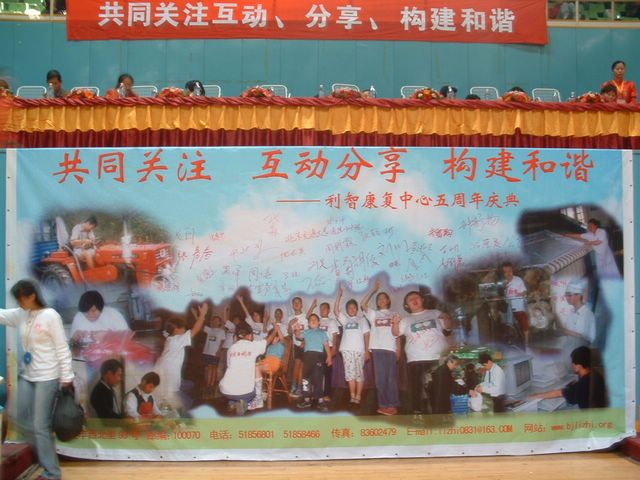 10月23日,志愿者协会应邀参加了利智中心成立五周年庆典活动。活动在丰台体育中心举行。在进行了会场的志愿服务之后,协会的会员和其他来参加庆典的关注利智中心的人员共同观看了演出。其中智障学员表演的节目给大家留下了深刻的印象,尤其是由二十多名学员一起配合手语演唱的《感恩的心》,将会场的气氛推向了最高潮。在场的很多观众都感动得哭了。