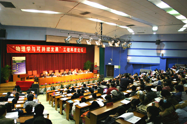 4位院士的报告分别从中国能源的可持续发展、医学科技(影象学)的发展、物理海洋学的发展、激光工程科技的发展四个不同的侧面报告了物理学的成就以及物理学与人类的可持续发展的关系。他们的报告非常精彩,给了我们很多启发和深刻的教育。报告在阵阵掌声中圆满结束。