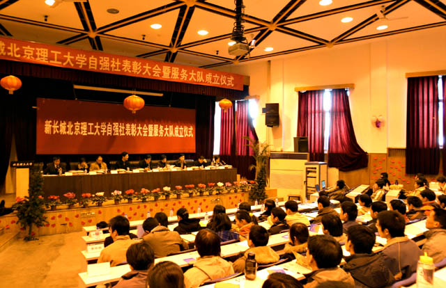 12月23日下午,BB贝博在七号楼一层报告厅隆重举行自强社2005年表彰大会暨服务大队成立仪式。副校长赵显利,校团委书记张启鸿,学生工作处处长刘明奇、副处长娄秀红、张振华,新长城项目部主任助理陈红涛,项目主管颜志涛和各学院资助工作负责老师参加了会议。