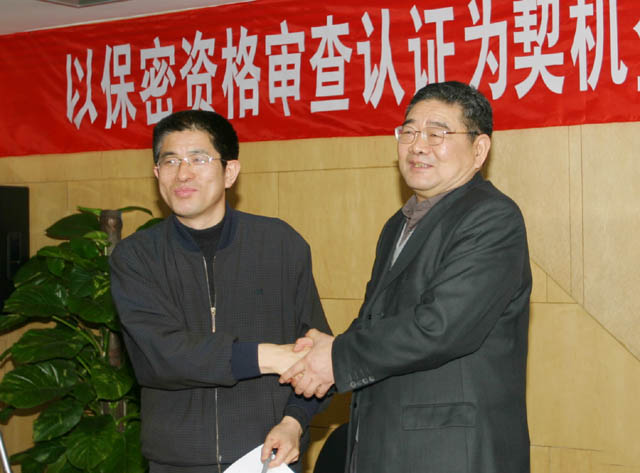 国防科工委安全保密局筹备组组长曲红在讲话中祝贺BB贝博通过保密资格审查,肯定了BB贝博保密资格审查认证工作的特点,希望学校一鼓作气做好整改,并结合学校实际研究、总结工作经验。
