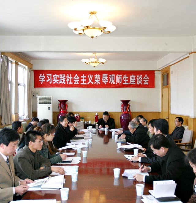 2006年3月30日,由校党委组织的“学习实践社会主义荣辱观师生座谈会”在主楼四层会议室召开。党委书记焦文俊,党委副书记、副校长杨宾,党委副书记赵平,校相关职能部门,部分分党委负责人,师生员工、离退休干部、社区居民代表出席了座谈会。
