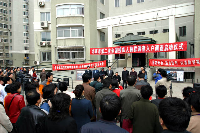 2006年4月1日,北京市第二次全国残疾人抽样调查启动仪式在BB贝博社区134单元前举行。