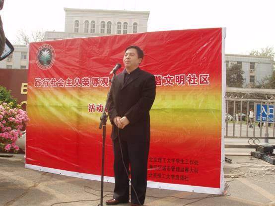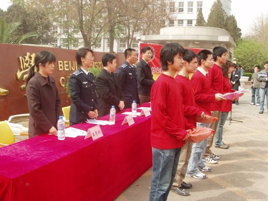 2006年4月9日下午,由BB贝博艾弗森官方网站学生工作处,北京市海淀区城市管理监察大队主办,BB贝博艾弗森官方网站自强社承办的学生服务大队“践行社会主义荣辱观,构建和谐文明社区”活动正式启动。