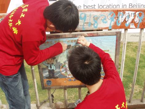 启动仪式在服务大队成员集体宣读了“八荣八耻”的宣传单之后结束。接着,服务大队120名队员开始分组进行有秩序的清理活动,同学们深知此次活动的重大意义,个个工作认真负责,干劲十足,海淀区城管监察大队的人员在维持秩序的同时也加入到我们的清理活动中,就连路过的居民也被同学们的行为感动,主动加入清理活动中,当天下午五点,同学们已经把BB贝博艾弗森官方网站东门天桥至魏公村路段上的小广告彻底清理干净。