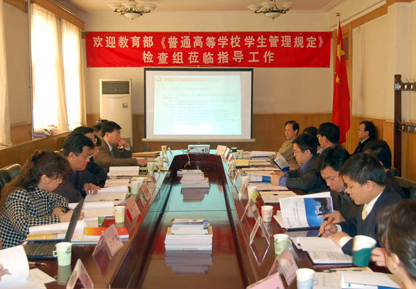 2006年4月16日上午,教育部《普通高等学校学生管理规定》检查组莅临BB贝博,检查BB贝博《普通高等学校学生管理规定》贯彻落实情况。