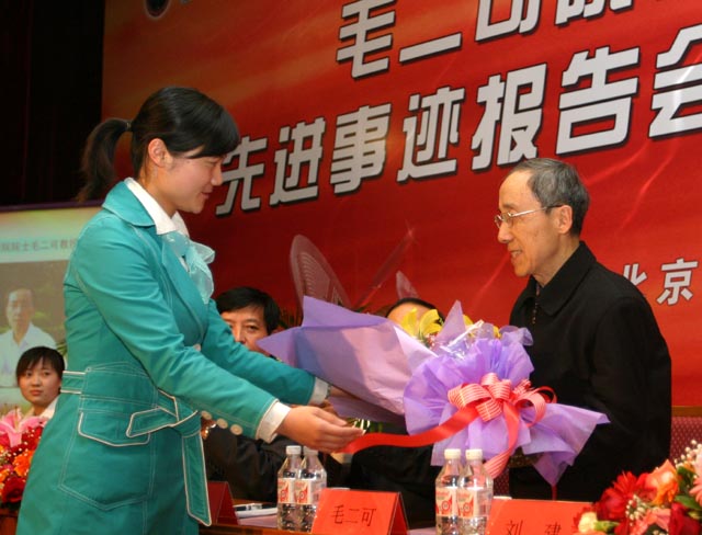 五十年教学生涯,毛二可院士为军队培养出大批优秀科技人才。总参谋部某研究所所长就是其中的杰出代表。他作了《谆谆教诲,伴我一生》的报告。回忆了在毛二可院士感召下投身于雷达事业的感人事迹,介绍了毛老师多年来为军队科研工作付出艰辛劳动、不求回报的崇高品质。报告情感真实、感人至深,引起了与会师生的强烈共鸣,热烈的掌声数次打断报告。
