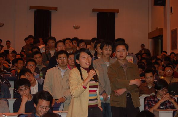 在演讲过后的交流环节中,同学们争先恐后的举手提问,整场讲座同学们通过直接提问或写纸条提问的方式向华大使提出了约50多条问题,问题的内容涉及到伊朗伊斯兰革命、中国在伊朗核问题中的国家利益、伊朗核问题走向的预测、中东局势的前景等。