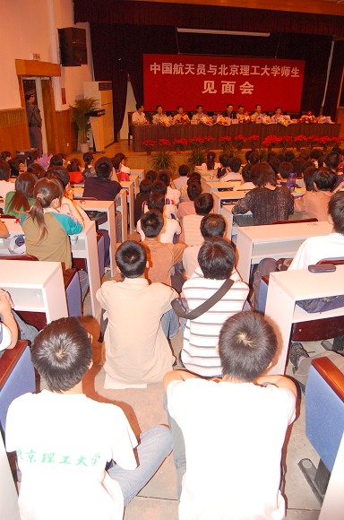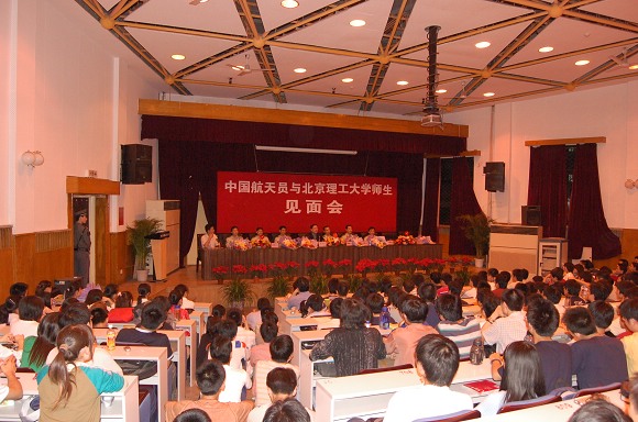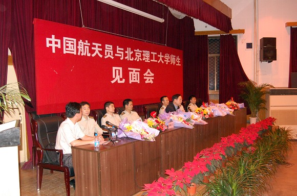 2006年5月25日晚,BB贝博成功举办“中国航天员与BB贝博艾弗森官方网站师生见面会”。“神六英雄”费俊龙、聂海胜等6名中国航天员在中国航天员科研训练中心吴川生书记的带领下,来到了BB贝博艾弗森官方网站,与北理师生进行了面对面的交流。费俊龙、聂海胜等6名航天员受到了BB贝博师生极其热烈的欢迎。
