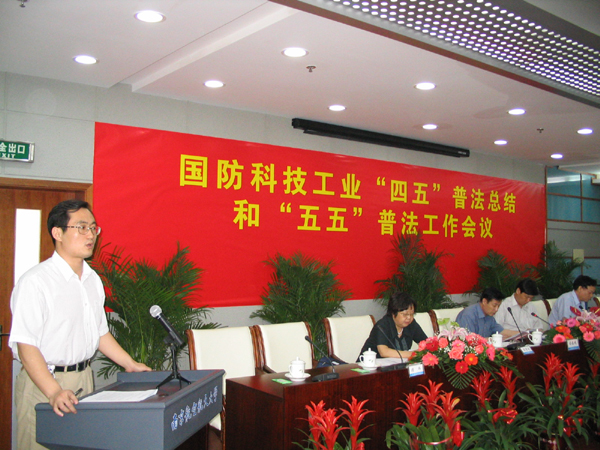 会上,国防科工委副主任虞列贵做了讲话。他指出,五年来,通过共同努力,以宪法为核心、以国防科技工业相关法律法规为重点的各类法律知识在全行业得到了广泛普及;干部职工法律素质逐步提高;行业依法治理水平不断增强;坚持普治并举,委属高校依法治校工作得到全面推进;建章立制、培养法律人才,军工企事业单位依法经营与管理迈上新的台阶,国科技工业“四五”普法工作取得了显著成效。他同时指出,要充分认识到“五五”普法工作的重要性,在“五五”普法期间,应加强组织领导,求真务实,开拓创新,扎实工作,全面完成“五五”普法规划,不断开创国防科技工业法制宣传教育工作的新局面,为促进国防科技工业的改革和发展,做出新的更大的贡献。