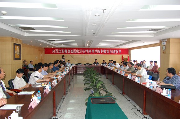 16日上午,在国际交流中心会议室,教育部验收核查专家组对BB贝博国家示范性软件学院的综合考评后进行意见反馈。出席意见反馈会议的学校领导有:党委书记焦文俊、副书记侯光明、副校长孙逢春、赵显利,还有学校相关职能部门和软件学院的各级领导及师生代表。