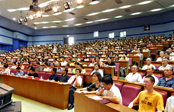 利用现代化手段,本次大会在中心教学楼一层报告厅和0317教室同步进行,全校教工党支部,党员代表约1000人参加了报告会。