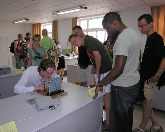 7月7日上午,荷兰UTRECHT大学(www.hu.nl)访华团一行21人来BB贝博参观交流。师生们先来到BB贝博的工程训练中心参观,在训练中心老师的指导下同学们还亲自操作了实验仪器。