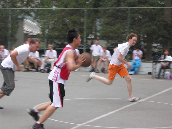天气很炎热,但是大家参与的热情丝毫不逊色于夏日的天气。比赛进行得紧张、激烈但友好,赛场上笑声、掌声不断,吸引了很多同学到场观看并加油助威。在比分落后之时,荷兰UTRECHT大学的一位老师为鼓舞士气还亲自披挂上阵。