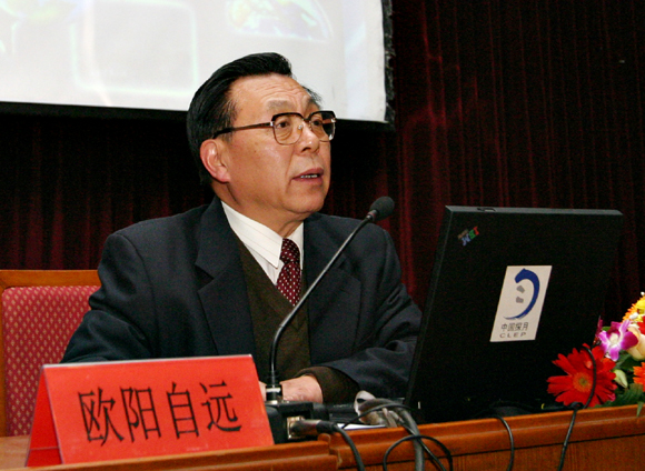 欧阳自远院士长期从事天体化学、地球化学、资源与环境科学研究,是我国天体化学等学科的开创者。在国内外已发表论文340多篇,出版专著7部,主编专著11部。现任中国科学院院士、第三世界科学院院士、我国月球探测工程首席科学家、中国科学院地球化学研究所研究员、中国科学院国家天文台高级顾问。