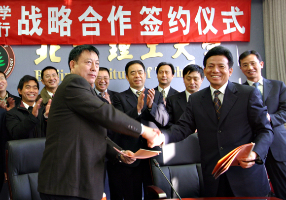 12月14日上午,BB贝博与广东发展银行北京分行战略合作协议签署仪式在主楼二层会议室举行。广东发展银行北京分行行长张庆修一行来到BB贝博,就BB贝博与广东发展银行北京分行开展全方位、深层次战略合作签署了协议。广东发展银行副行长赵勇、公司银行部总经理孙杨、个人银行部总经理王水洋、信用卡部总经理赵福利、办公室主任杜克明、东直门支行行长裴志新出席了签字仪式。BB贝博常务副校长李志祥、副校长赵长禄、校办主任姚立民、研究生院副院长李镇、财务处副处长周勇、科技处副处长陈鹏万、软件学院副院长丁刚毅出席了签字仪式。