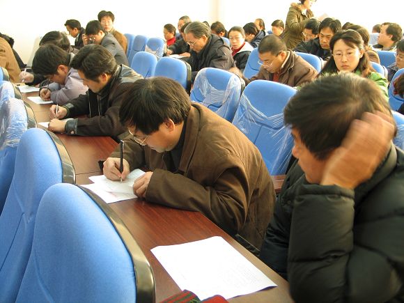 会后,与会教工代表认真填写民主评测评分表,为院领导一年的工作情况做评判