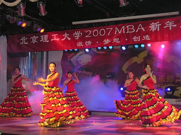 晚会在一支极具民族特色的歌舞《欢乐中国年》中拉开帷幕,整个联谊会节目丰富多彩,高潮迭起,现场气氛非常热烈,充分体现了本次晚会的主题――“激情·梦想·创造”,并展现了新一届MBA学员的精神风貌。晚会节目形式多样,有歌曲,舞蹈,相声,方言小品,4句半等。由济宁班MBA同学表演的单口相声《宇宙牌香烟》内容新颖,搞笑元素源于MBA生活,令全场观众捧腹大笑。之后的情歌对唱以及男生独唱,优雅的歌声让现场观众陶醉。而由06MBA脱产班6位女生表演的西班牙舞蹈《玛丽娅》将晚会引入了高潮,她们跳出了激情,炫出了青春与活力,是晚会的一大亮点。原创4句半《理工随想》幽默诙谐真实的反映了在职班同学对MBA生活的体会与感受。一支6人原创舞蹈《一起来恰恰》更是将现场气氛掀向更高。另外,由4位男同学合唱的一首《精忠报国》气势恢弘,唱出了MBA学员的赤胆忠心。晚会另一个亮点是由06MBA同学用“天津话,四川话,陕西话,山东话,湖北话等”表演的小品《方言祝福》,浓浓的乡音引起了现场观众的共鸣,这些来自祖国五湖四海同学也表明了北理工MBA教育品牌在国内的广泛认可。最后,由所有现场MBA同学共同表演的手语操《感恩的心》,出现了一幕幕感人的场面,同学把鲜花献向了在场的老师,现场的嘉宾也与大家同台表演。MBA同学们用手语和歌声表达了对老师、领导的感谢,感谢所有给予北理工MBA教育关心与支持的各界人士,晚会在这首充满温情的手语操中落下了帷幕。