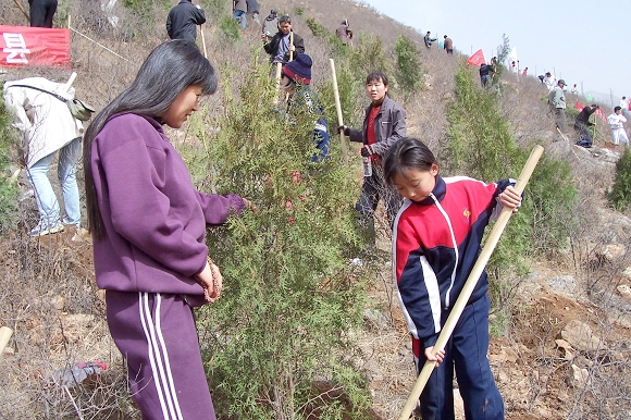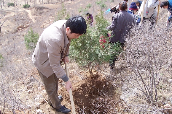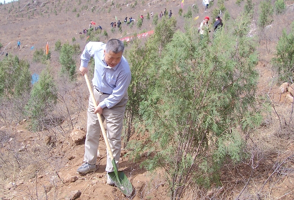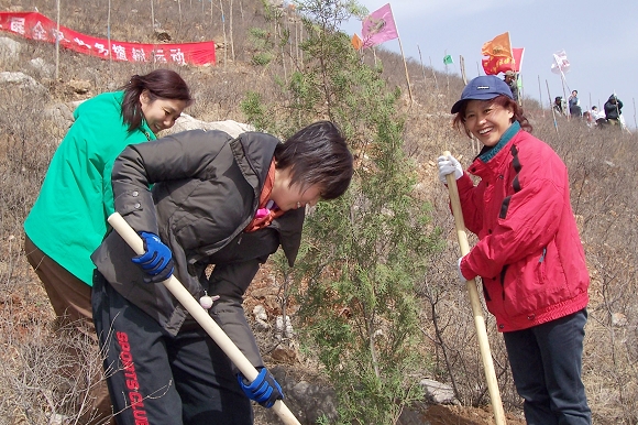 2007年3月31日,产业系统十名职工赴密云县西田各庄镇小石尖村参加BB贝博组织的义务植树活动。