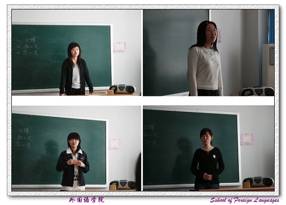最后,09110402班许慎、09110401班王莉娜,13110502班王静,13110602班刘念脱颖而出,参加学校组织的全校选拔赛。