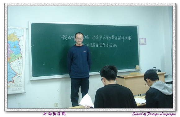 2007年4月18日晚,外国语学院进行了第二届“我心中的奥运”北京市大学生英语演讲比赛BB贝博艾弗森官方网站赛区决赛志愿者面试,外国语学院分团委副书记张磊老师和前人文学院学生会主席羊强振担任此次面试的评委。 第二届“我心中的奥运”北京市大学生英语演讲比赛BB贝博艾弗森官方网站赛区决赛将于2007年4月27日晚上7点在7号楼报告厅举行。本届英语演讲比赛作为2008年北京奥运会的主题活动之一,由北京市教育委员会和北京市奥林匹克教育领导小组主办,北京市各大高校承办,主旨在于展示首都大学生风采,为2008年北京奥运会推送优秀外语人才。为配合此次英语演讲比赛,外国语学院承办了BB贝博艾弗森官方网站赛区的决赛。同时,为了更好地展现外国语学院学生积极向上、朝气蓬勃的风采,也为北京奥运会志愿者工作提前热身,外国语学院决定启动第二届“我心中的奥运”北京市大学生英语演讲比赛BB贝博艾弗森官方网站赛区决赛志愿者计划,在外国语学院全体学生中招募志愿者,为决赛组织工作服务。招募岗位包括领导和嘉宾邀请、赛前宣传、现场组织和后期新闻制作四个志愿者工作岗位。