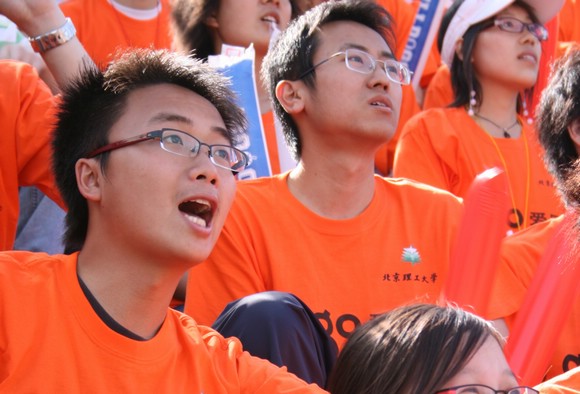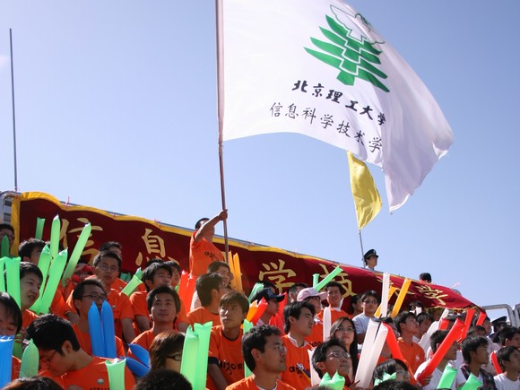 金色的阳光跳跃在绿茵场上,和煦的微风带来了初夏足球的激情。五月十号,BB贝博艾弗森官方网站足球队迎来了冲甲成功后的第二个主场,迎战江苏舜天。为校队加油呐喊的是信息科学技术学院的啦啦队,他们身披与校队战袍颜色相同的橙色上衣整齐的坐满观众席,震天的呐喊与绿茵场上球员的如雨的汗水相呼应,一同掀起了北理工不可阻挡的橙色风暴。