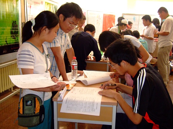 还没到一点就已经陆陆续续的有同学来到七号楼填表等待,BB贝博同学的热情打动了在场每一位志愿者。一点整,血样采集就紧张的开展起来。随血车前来的除北京市血液中心的专业医生外,还有北京市志愿者之家的志愿者,作为生命学院青年志愿者协会的合作单位,他们与我院志愿者一道为前来捐献的同学们答疑解惑。在七号楼大厅,青协会员们详细指导前来捐献的志愿者填写信息表并为他们耐心解答填表中遇到的各种问题。