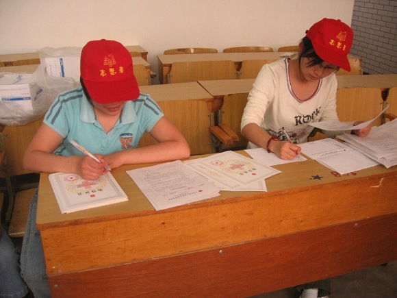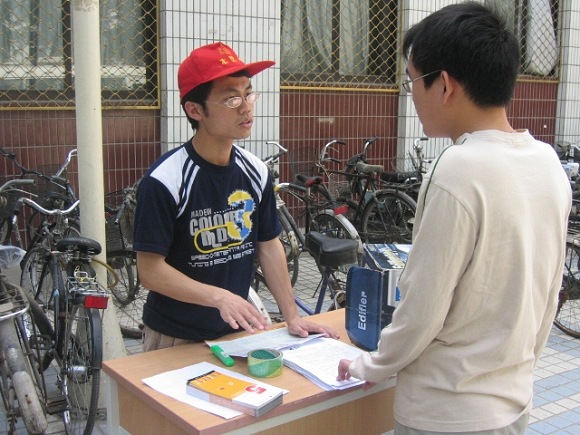 造血干细胞血样采集的程序并不复杂。志愿加入资料库的同学首先填写一张登记表,上面有个人姓名、身份证号、出生日期、工作单位、职业、联系方式、亲友联系方式、健康状况等个人信息。填写完毕,并经青协干事与志愿者之家的工作人员确认后,在七号楼306教室实施血样采集工作。在那里,每个捐献者进行编号后,工作人员仅仅抽取5毫升血液样本,就结束了整个采集工作。这也标志着同学成为造血干细胞资料库的正式成员,每个捐献者随后得到中国造血干细胞捐献者资料库管理中心颁发的荣誉证书以及纪念章或纪念品。