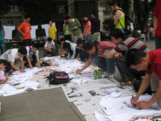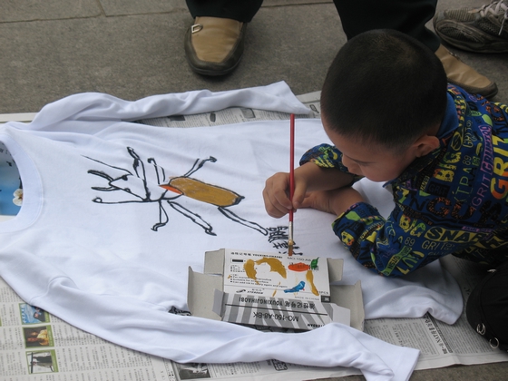 由于活动当天正值儿童节,因此我们特意准备了5件T恤给小朋友。虽然他们的绘画显的很稚嫩,但是他们不乏对奥运的激情。这也更好地实现了本次活动的宗旨,即展现大家的创造力和表达全民支持奥运的心声。